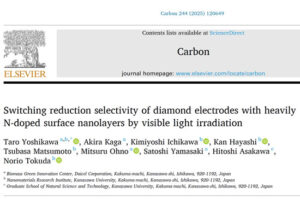 Carbon (Elsevier)に論文が掲載されました。ダイヤモンド電極の還元反応選択性のスイッチングに関する成果です。金沢大学・徳田研究室、株式会社ダイセルとの共同研究の成果です。Link